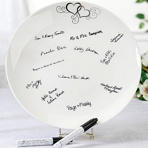 Guests can leave signatures on the plate with markers, and the couple can then display the plate in their home as a memento of their special day.