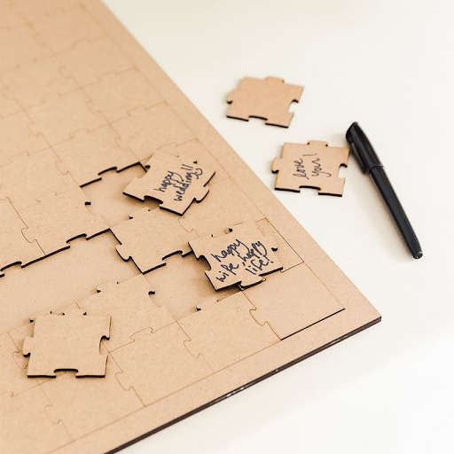 Guests can sign or leave short messages on the puzzle pieces and then put them in. alternatively, you can assemble the entire puzzle and have guests add signatures or messages wherever they want.